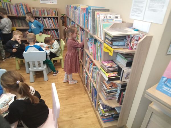10 października naszą bibliotekę odwiedziły dzieci z Oddziału Przedszkolnego w Szkole Podstawowej w Długołęce – Świerkli . Dzieci zwiedziły bibliotekę, poznały zasady korzystania ze zbiorów bibliotecznych, dowiedziały się, co należy zrobić aby zostać „Małym Czytelnikiem”. Rozmawialiśmy o ulubionych książeczkach, oraz o tym, jak należy o nie dbać. „Rzepka” Juliana Tuwima przeniosła nas w świat poezji dziecięcej. Po wysłuchaniu utworu, spore emocje wzbudziły zadania związane z układaniem bohaterów „Rzepki” w odpowiedniej kolejności. Na zakończenie dzieci wykonały pamiątkowe zakładki do książek oraz miały okazję zapoznać się z działem dla najmłodszych czytelników.