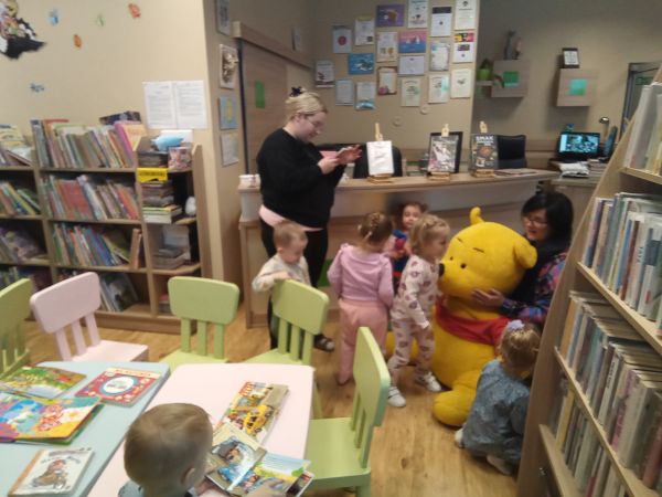 Niezwykłe chwile spędziliśmy razem z dziećmi z Gminnego Żłobka w Podegrodziu. Dzieci z zaciekawieniem wysłuchały książeczki o zwierzętach, a zaczarowaną latarką dzielnie szukały bohaterów opowiadania. Wiele radości sprawiło dzieciom oglądanie książeczek, rysowanie zakładek i przytulanie misiów, które mieszkają w naszej bibliotece. Dziękujemy za miłe spotkanie.