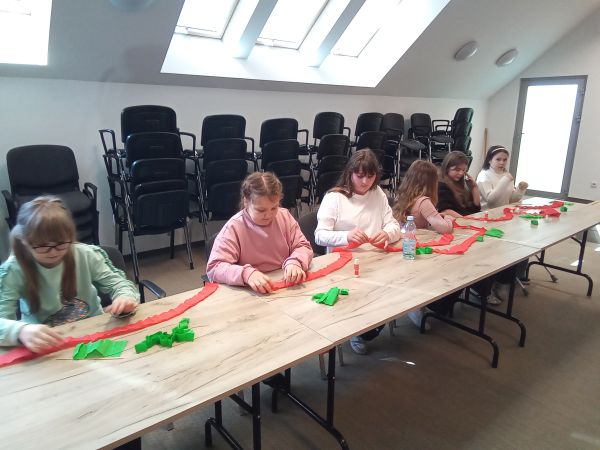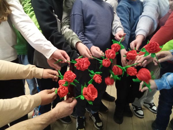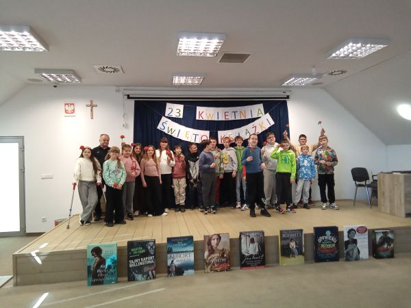 W tym roku „Święto Książki” obchodziliśmy wspólnie z zaproszonymi uczniami z klasy IV i V ze Szkoły Podstawowej w Gostwicy. Uczniowie poznali historię tego wyjątkowego święta oraz wysłuchali Światowego Hymnu Książki UNESCO , którym jest utwór "Włosek poety" Tadeusza Różewicza z muzyką Jana Kantego Pawluśkiewicza. Spotkanie było również okazją do poszerzenia wiedzy na temat książek. Na zakończenie młodzież wykonała piękne róże z bibuły.